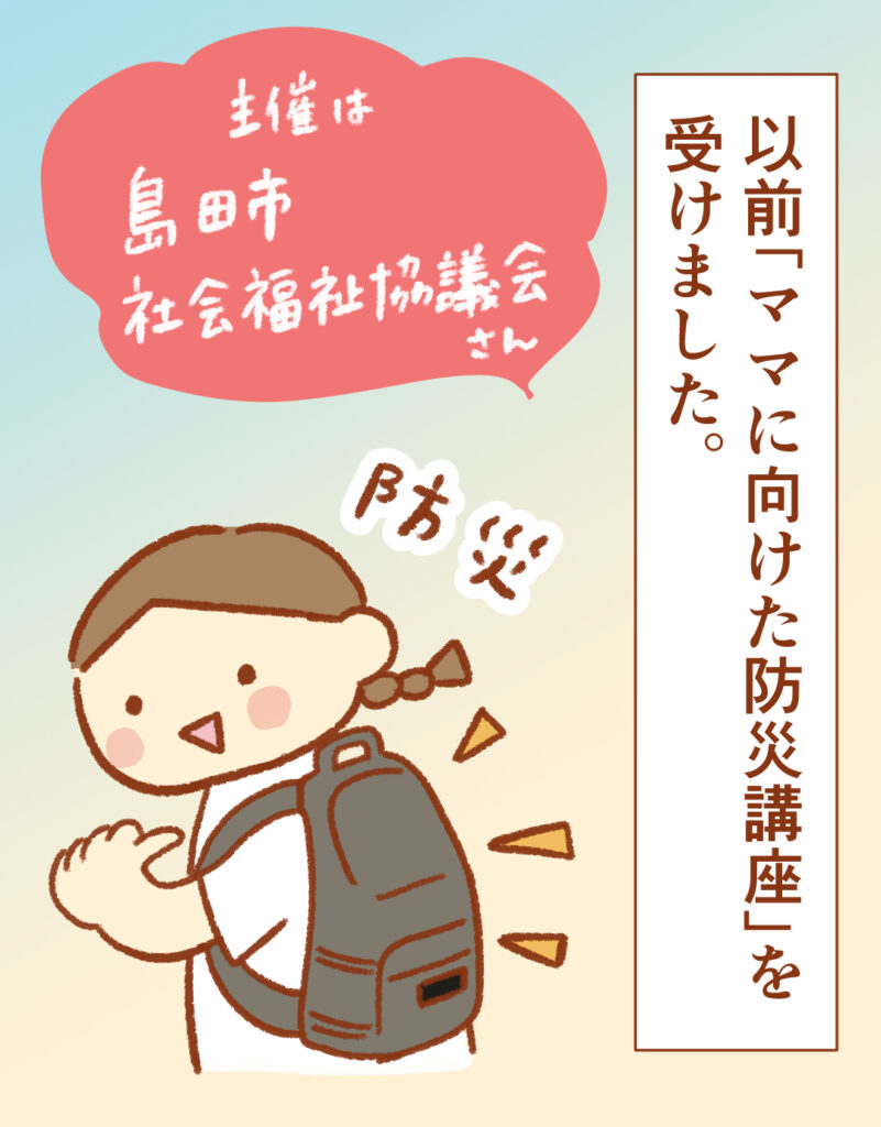 「これだけ備えがあれば大丈夫でしょ」と自分目線で考えていましたが、子どものことを中心に備蓄を考えないと取りこぼしがあるかも、ということに気づかされました。